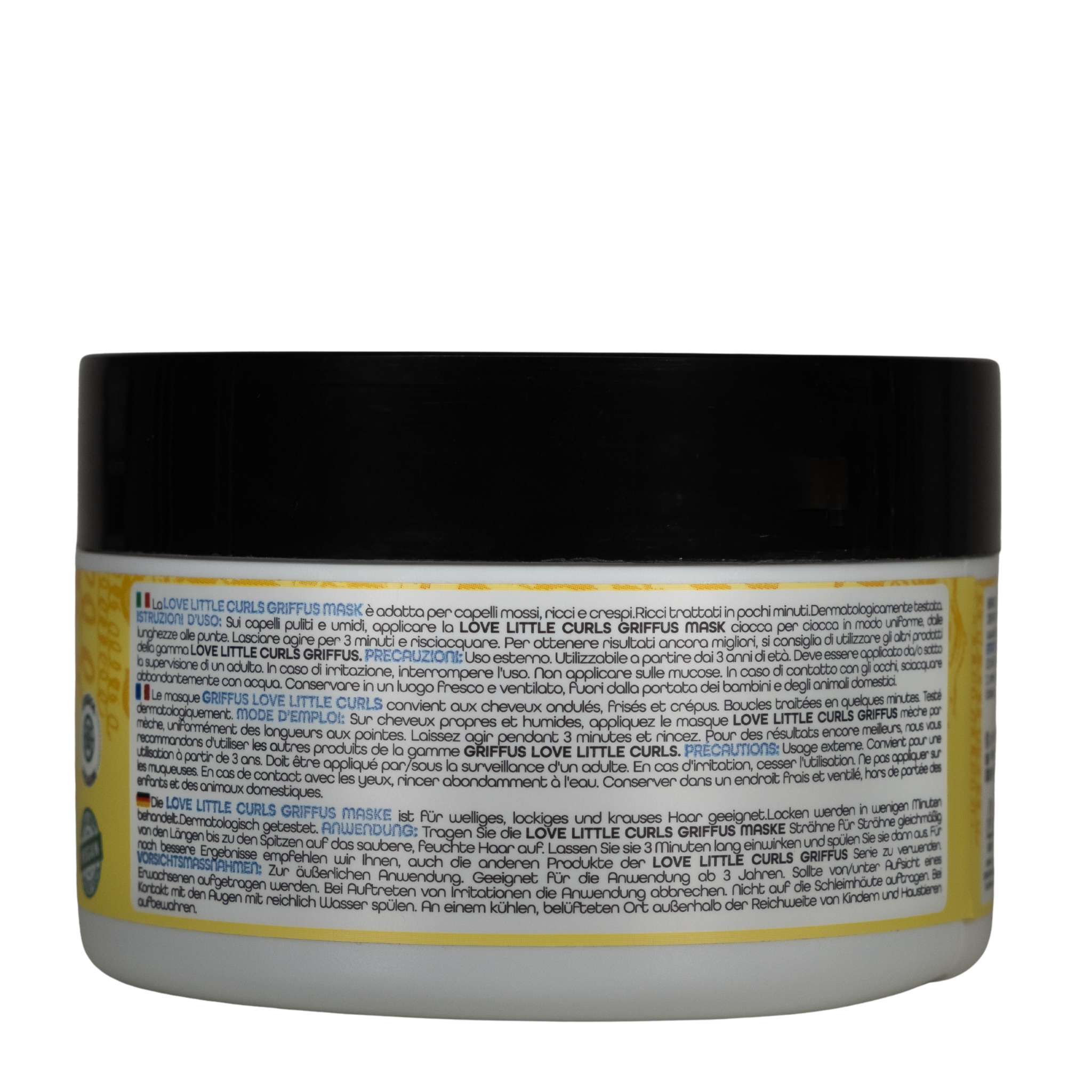 Sans sulfates, sans parabènes, sans silicone, sans pétrole ni colorants artificiels, le masque Griffus Little Curls est hypoallergénique et testé dermatologiquement, pour garantir une utilisation sans risque pour les cuirs chevelus sensibles. Il est également vegan et cruelty free, fidèle à l’engagement éthique de la marque.
